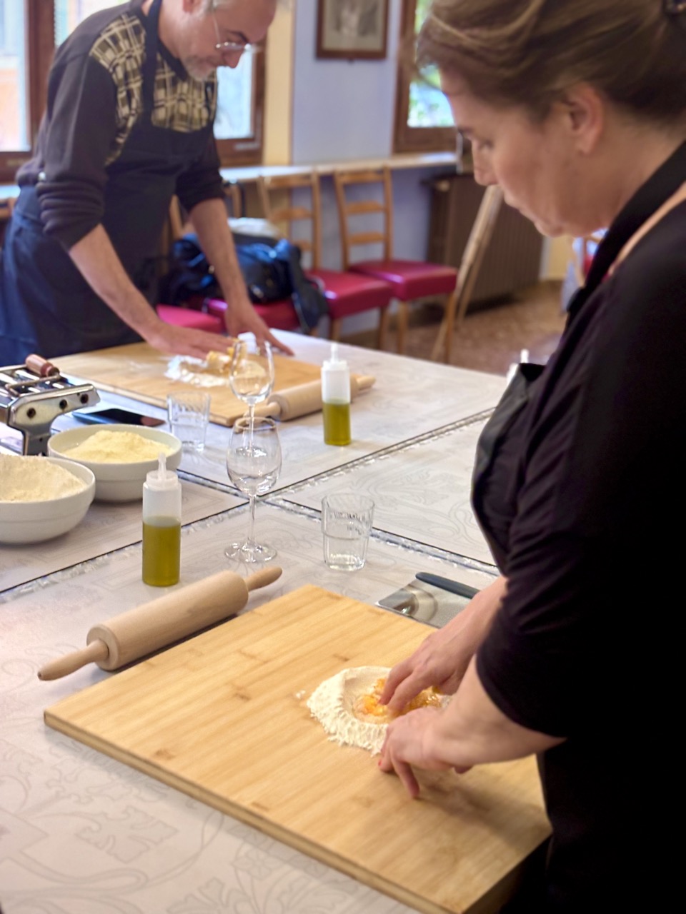 Bajo la dirección del chef, prepararás dos platos tradicionales: tortellini con un relleno cremoso y tallarines cortados a mano. En esta clase de cocina práctica aprenderás haciendo y riendo.